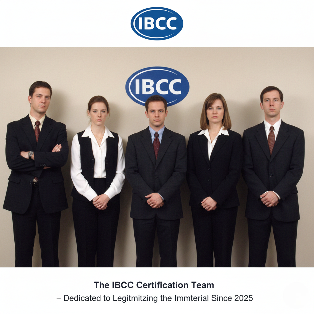 The IBCC is not just a system — it's a performance of authority. By presenting itself as an official certification body, it questions the mechanisms of legitimization: who has the power to say what exists or not? What makes something "valid" — a stamp, a signature, a registration?